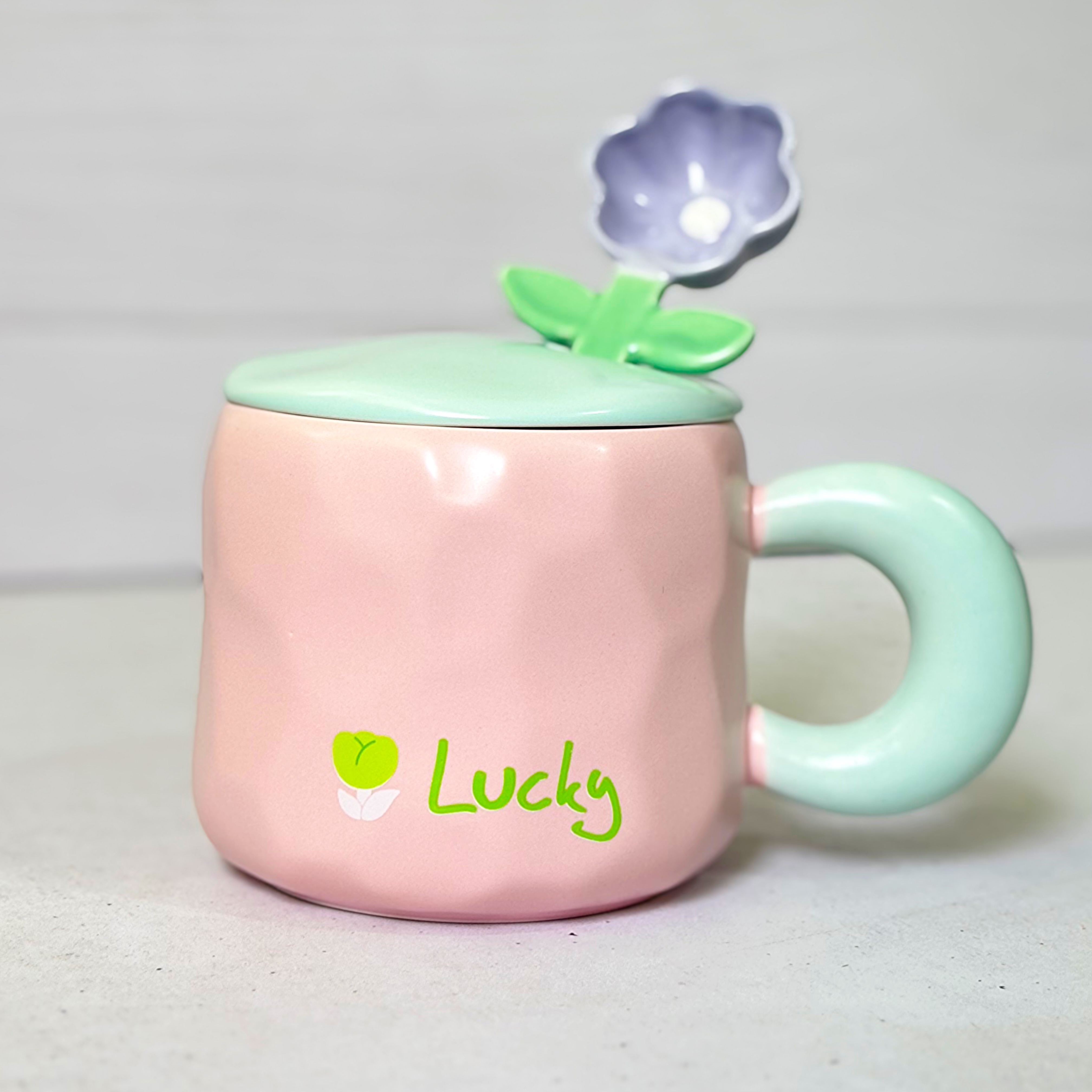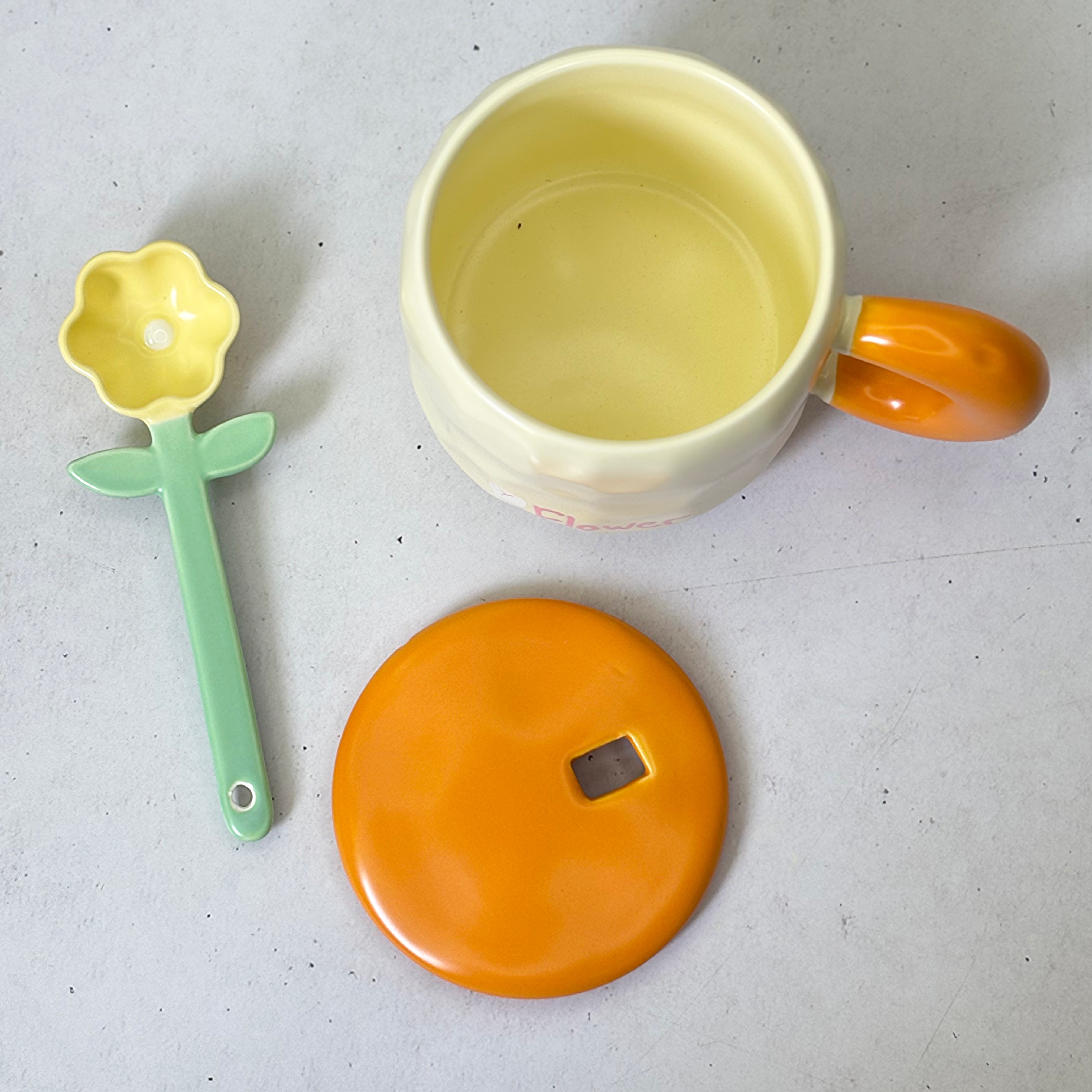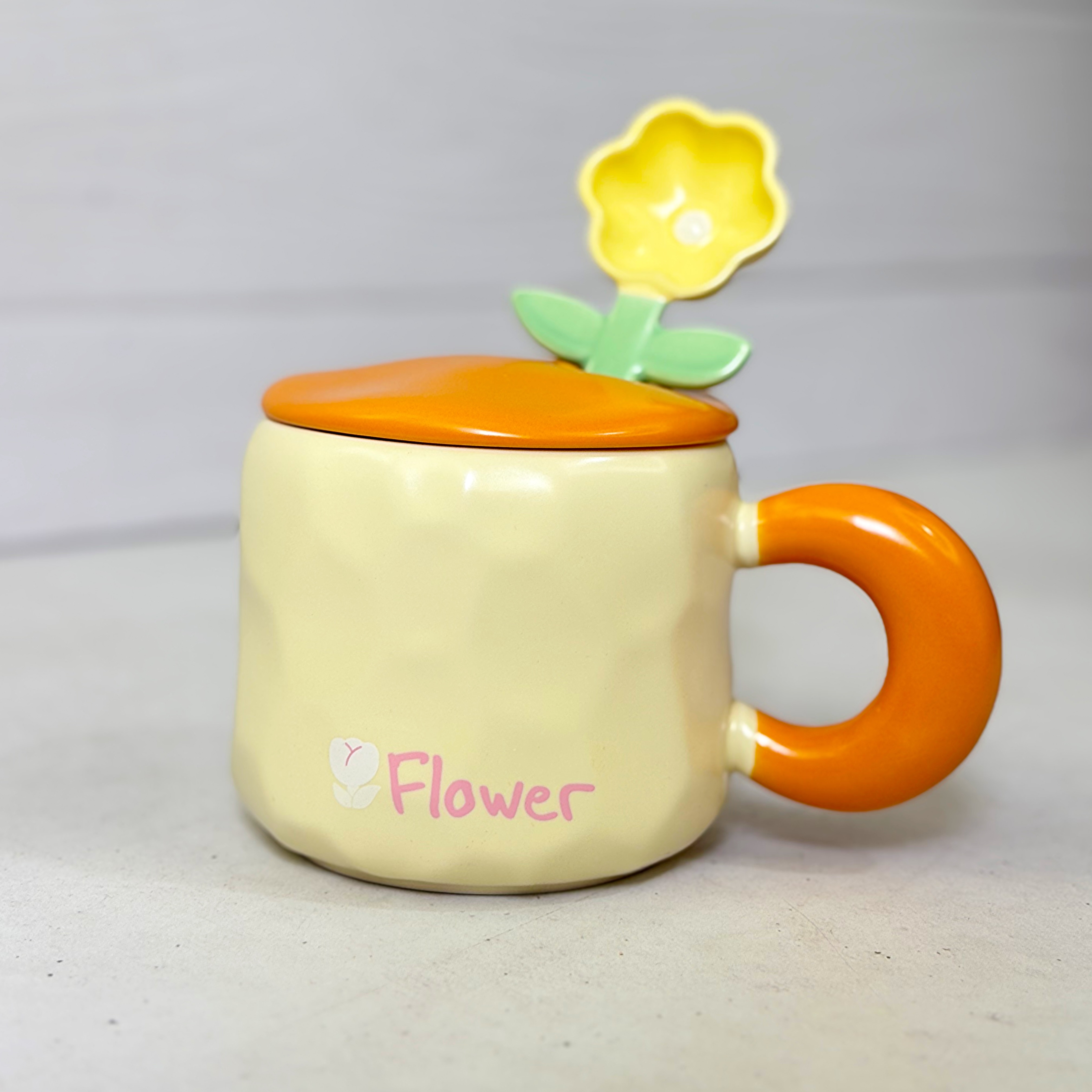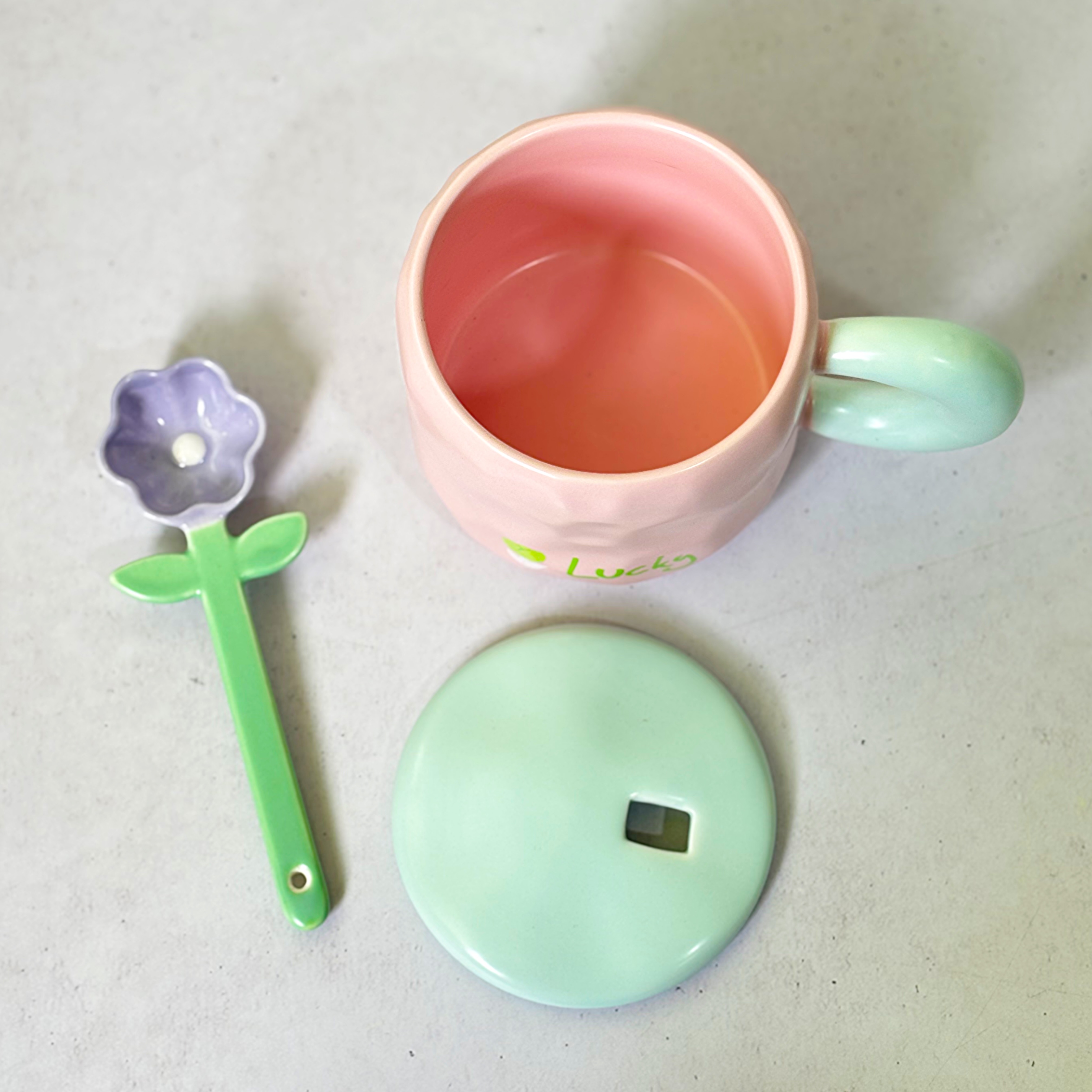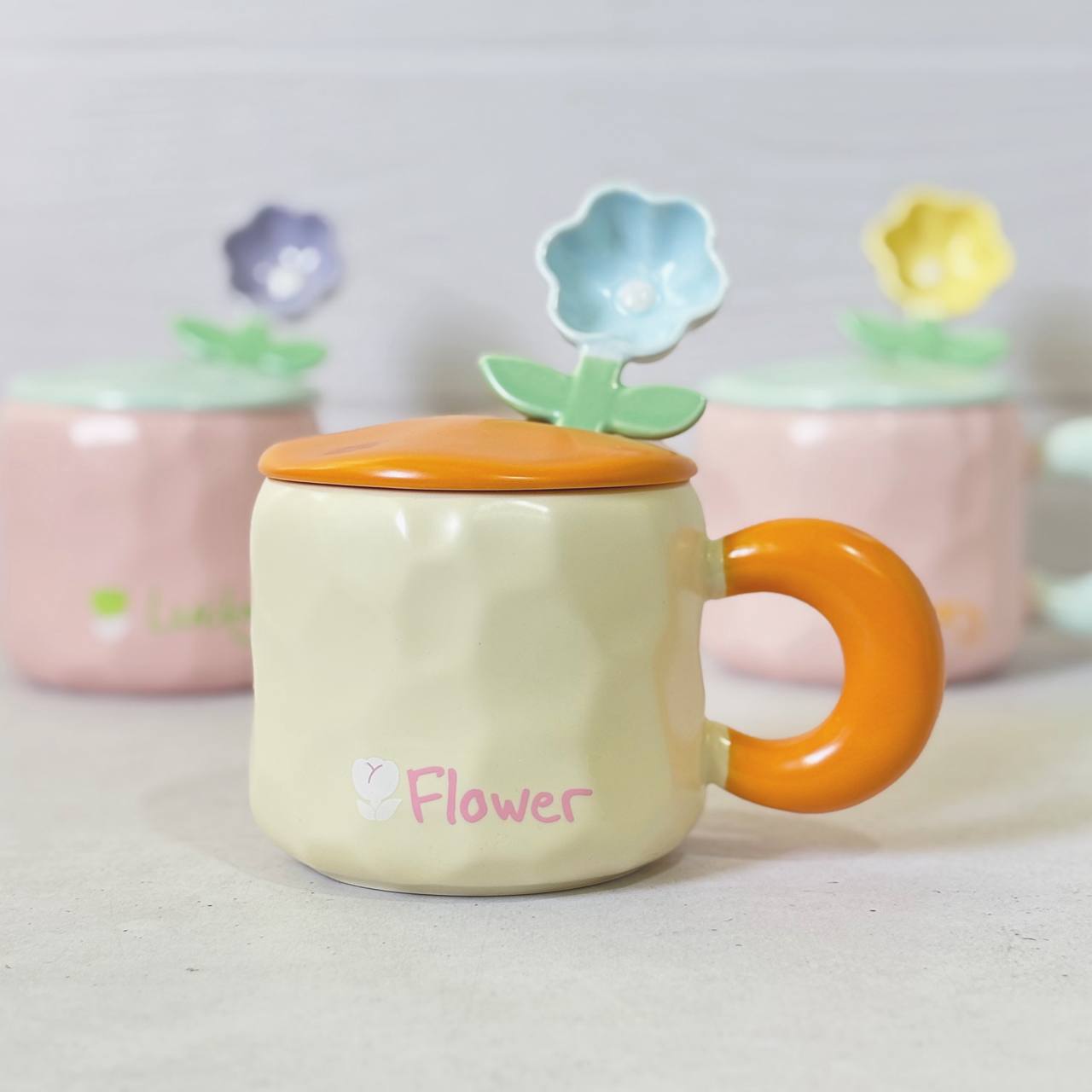 ماگ سرامیکی با کیفیت بالا همراه با در و قاشق فانتزی طرح گل