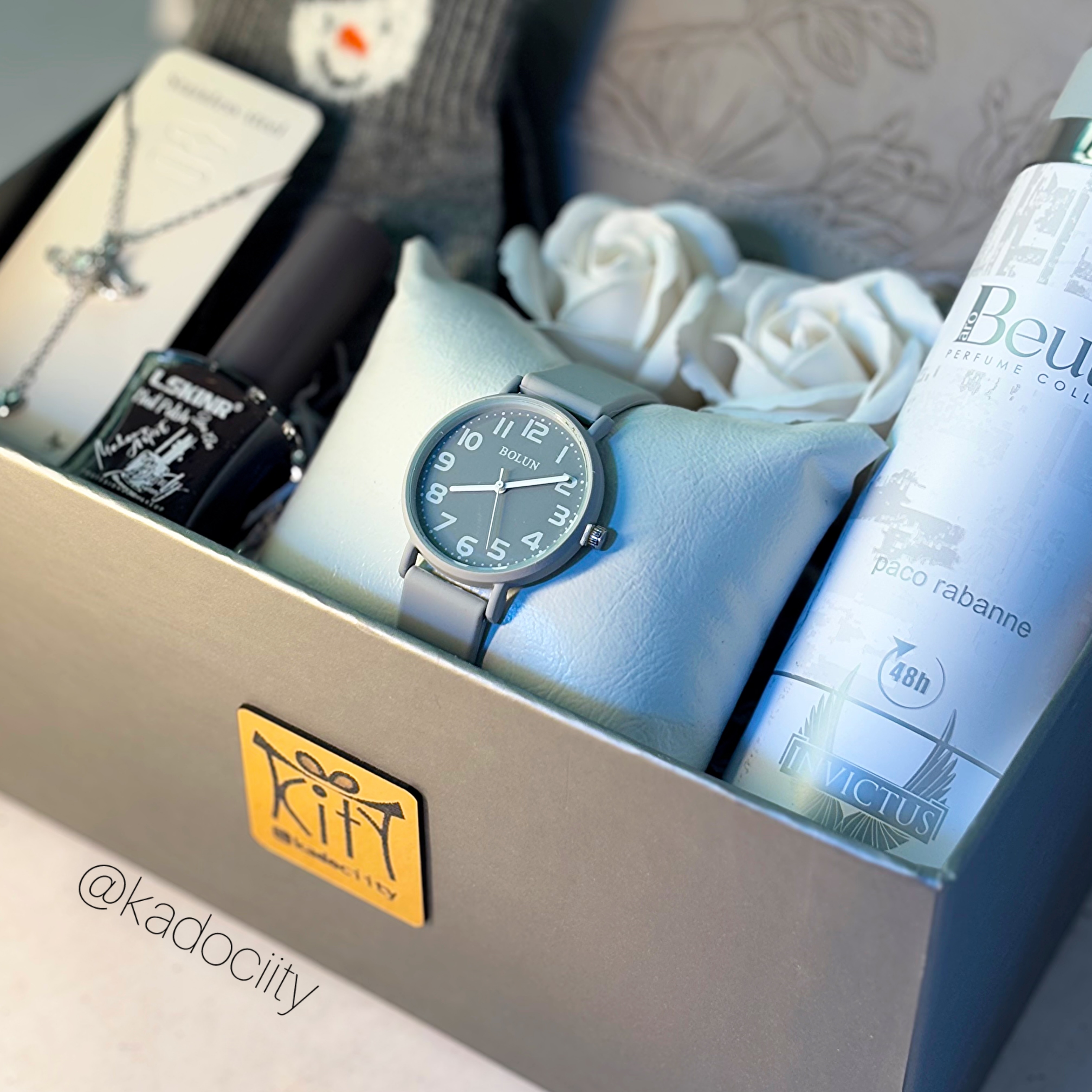 باکس زنونه شامل:اسپری، ساعت ژله ای،کیف پول ، جوراب،لاک، گردنبند ، گل معطر و باکس و پوشال میباشد.